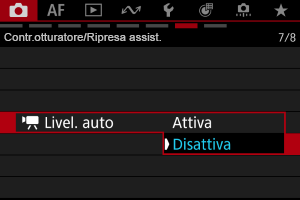Questa funzione contribuisce a mantenere dritto il filmato durante la registrazione. Quando questa funzione è impostata, l'area di visualizzazione potrebbe restringersi e i soggetti potrebbero essere ingranditi.