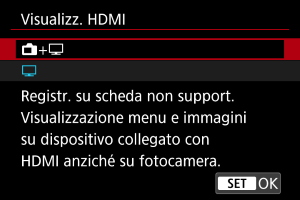 È possibile specificare la modalità di visualizzazione dei filmati registrati tramite HDMI su un dispositivo esterno. L'uscita del filmato corrisponde all'impostazione [: Dim. filmato reg.].