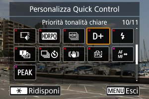 - Gli elementi visualizzati nella schermata Quick Control sono contrassegnati con un segno di spunta.