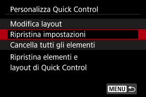 Reimpostazione della schermata Quick Control o cancellazione di tutti gli elementi