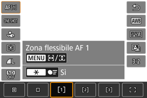 È possibile impostare manualmente il punto AF o la cornice della zona AF. Schermate come le seguenti vengono visualizzate quando è impostato Zona flessibile AF 1.