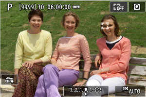 - Se il viso del soggetto è notevolmente fuori fuoco, non sarà possibile utilizzare la funzione di rilevamento del volto. Regolare manualmente la messa a fuoco () in modo che il viso possa essere rilevato, quindi eseguire AF.