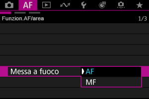 - Si può anche passare da [AF] a [MF], e viceversa, quando la schermata di scatto/ripresa è visualizzata premendo il tasto AF MF.