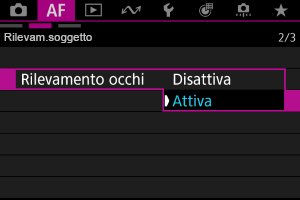(Quando il soggetto da rilevare è impostato su [Persone], gli animali possono essere selezionati solo durante AF Servo).