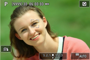 Quando si premere il pulsante di scatto a metà, viene visualizzato un riquadro di inseguimento (in verde per AF One-Shot o in blu per AF Servo) e viene emesso un segnale acustico.