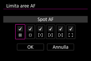 : Limita aree AF] indica che l'impostazione predefinita è stata modificata.