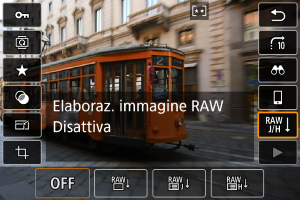 È possibile selezionare il tipo di elaborazione delle immagini RAW eseguita dalla schermata Quick Control.