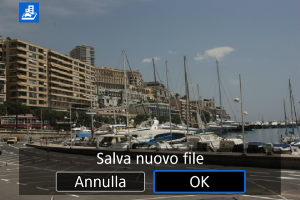 - Le immagini RAW non possono essere selezionate. Per le immagini acquisite con lo scatto RAW+JPEG, il filtro viene applicato all'immagine JPEG prima di salvare i risultati.