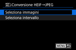 per selezionare un'immagine HEIF da convertire in JPEG, quindi premere