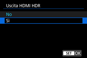 Le immagini RAW o HEIF possono essere visualizzate in HDR connettendo la videocamera a un televisore HDR.