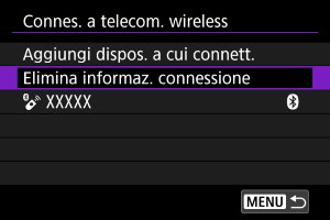 È possibile eliminare le informazioni di connessione. Le informazioni di abbinamento delle unità BR-E1 connesse vengono eliminate.
