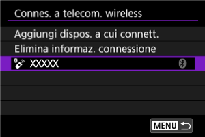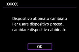- Viene visualizzato un messaggio se la videocamera è già abbinata a un altro dispositivo. Selezionare [OK] per terminare la connessione Bluetooth corrente.