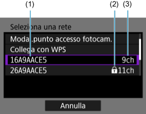 Selezionare [Modal.punto accesso fotocam.] nella schermata [Seleziona una rete].