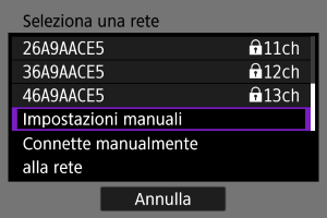 Selezionare [Impostazioni manuali] nella schermata [Seleziona una rete].