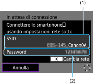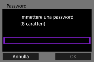 - Nelle impostazioni Wi-Fi dell'altro dispositivo, selezionare il SSID (nome della rete) visualizzato sullo schermo della videocamera, quindi immettere la password.