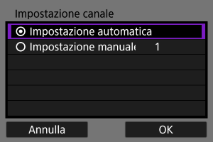 Selezionare un'opzione di impostazione del canale.