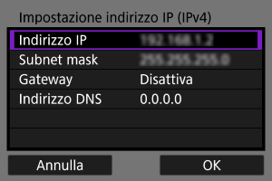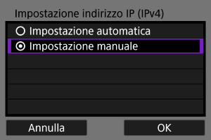 Configurare manualmente le impostazioni dell'indirizzo IP. Si noti che le voci visualizzate variano in base alla funzione di comunicazione.