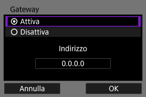 - Per utilizzare un gateway, selezionare [Attiva], quindi [Indirizzo].