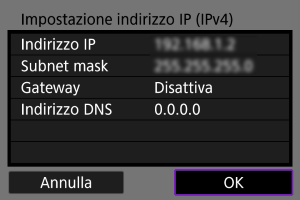 - Se è stato selezionato [Nessuno], viene visualizzata la schermata [Impostazione indirizzo IP (IPv4)] ().