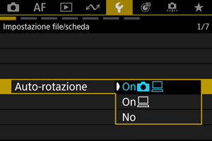 È possibile modificare l'impostazione della rotazione automatica che, quando vengono visualizzate, raddrizza le immagini acquisite con orientamento verticale.