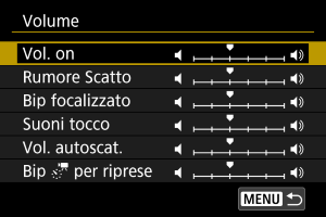 Il volume dei suoni della videocamera può essere regolato.