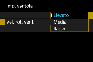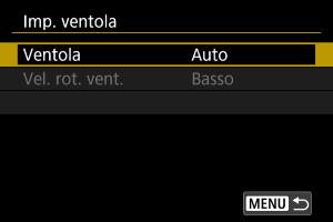 La ventola rimane in funzione alla velocità impostata in [Vel. rot. vent.].
