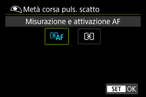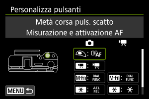 È possibile impostare le funzioni eseguite quando si preme il pulsante di scatto a metà durante la registrazione di filmati.