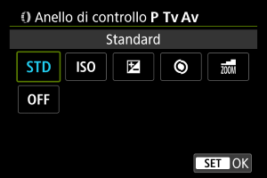 È possibile invertire la direzione di rotazione della ghiera di controllo per impostare la velocità otturatore e il valore di apertura.