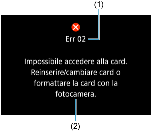 Se si verifica un problema con la videocamera, viene visualizzato un messaggio di errore. Seguire le istruzioni visualizzate sullo schermo.