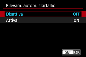 - [Rilevam. autom. sfarfallio] è disponibile indipendentemente dall’opzione [Sc. anti-flicker] selezionata.