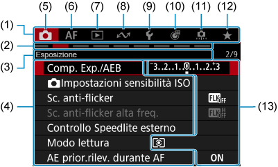 Le voci di menu oscurate non possono essere impostate. L'uso di queste voci è limitato da altre funzioni impostate.