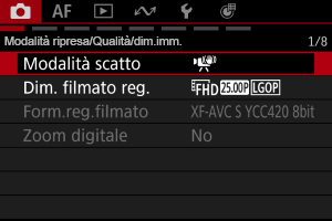 Visualizzare la schermata dei menu.