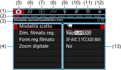 - (13) Impostazioni di menu