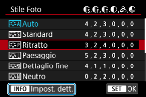 - Selezionare lo Stile Foto da regolare, quindi premere il pulsante INFO.