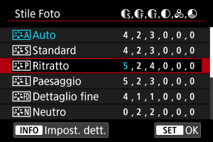 - Selezionando [Imp. predef.] al passo 3, è possibile ripristinare le impostazioni dei parametri del relativo Stile Foto ai valori predefiniti.