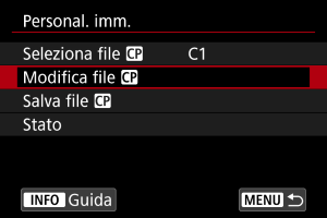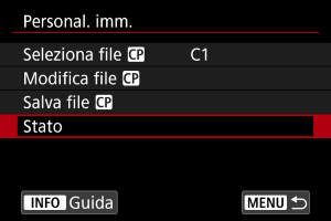 È possibile controllare le impostazioni del file della foto personalizzata nel menu [Personal. imm.].