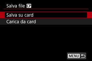 I file di foto personalizzate modificati possono essere salvati su una scheda e usati su altre fotocamere dello stesso modello.
