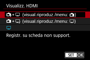 ]. I menu della fotocamera e la riproduzione delle immagini vengono visualizzati solo sullo schermo collegato tramite HDMI.