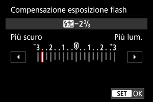 È possibile impostare l'aspetto preferito (bilanciamento) per gli scatti con il flash. Questa impostazione consente di regolare il rapporto tra la luce ambiente e la potenza luminosa dello Speedlite.