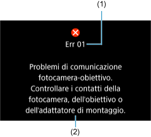 Se si verifica un problema con la fotocamera, viene visualizzato un messaggio di errore. Seguire le istruzioni visualizzate sullo schermo.