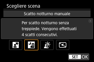 Per lo scatto notturno manuale senza treppiede o accessorio analogo.