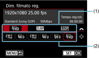 È possibile impostare le risoluzione, il frame rate e il metodo di compressione in [: Dim. filmato reg.].