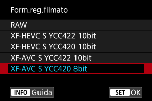 - È possibile scegliere un formato di registrazione per il filmato secondario nell'impostazione della scheda [