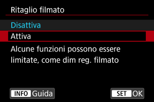 - L'area di registrazione disponibile con la funzione di ritaglio filmato è la stessa di quando si registrano filmati con obiettivi RF-S/EF-S.