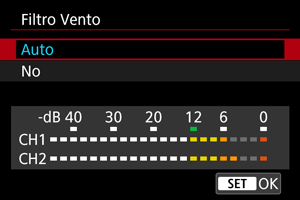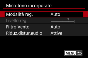 Disponibile quando si usa il microfono incorporato o microfoni da montare su slitta multifunzione che sono compatibili con i filtri vento.