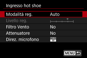 Per configurare le impostazioni di microfoni progettati per il montaggio su slitta multifunzione.