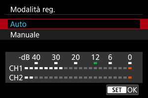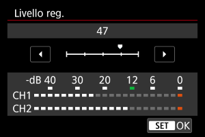 È possibile regolare manualmente il livello di registrazione dell'audio secondo necessità. Regolare il livello in [Livello reg.].