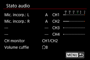 - [CH monitor] indica i canali impostati in [CH monitor ripr.] per [Cuffie] in [