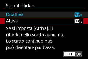 , selezionando [Sc. anti-flicker], quindi premendo il pulsante