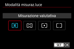 Sono disponibili quattro metodi (modalità di misurazione) per misurare la luminosità del soggetto. Generalmente, si consiglia la misurazione valutativa. Nelle modalità Zona base, viene impostata automaticamente la misurazione valutativa.